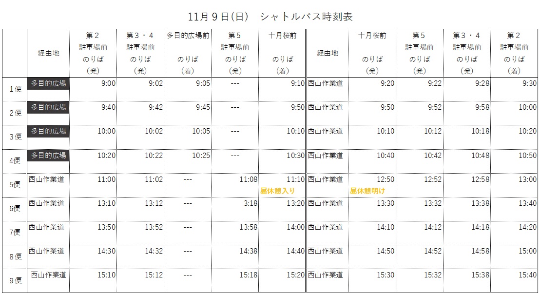 行きは、第2駐車場から多目的広場前を経由し、十月桜前に向かいます。