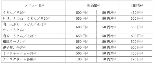 このたび、レストハウスメニューの料金改定を行うことになりました。